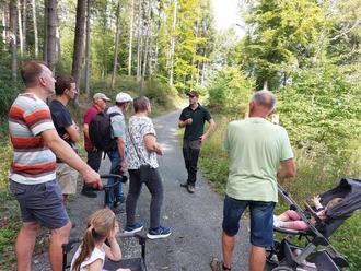 Förster Christian Scriba veranschaulichte bei der Wanderung die Herausforderungen, die der Wald und die Forstwirtschaft durch die Klimaveränderungen zu bewältigen haben. Durch die Waldschäden seien Neupflanzungen vonnöten.