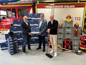 Vergangenes Wochenende hat Bürgermeister Inderthal in Vertretung für den Magistrat der Stadt Solms an die Feuerwehr Solms neue Einsatzstiefel für die Atemschutzgeräteträger und die erste Hälfte der Ausstattung für den neu aufgestellten Waldbrandlöschzug übergeben.