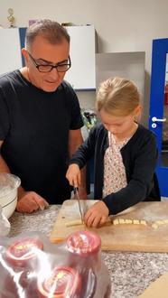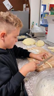 Last but not least fand Tonis Kochkurs statt, bei dem die Kinder selbst Gnocchi herstellten. Toni Di Leonardo zeigte wieder mal seine italienischen Kochkünste und wurde von den beiden Sozialpädagoginnen im Jugendzentrum unterstützt. Mit viel Spaß und Geschick kneteten die Teilnehmenden den Teig und formten die kleinen Kartoffelklöße, die anschließend gemeinsam zubereitet und verkostet wurden. Eine selbstgemachte Tomatensauce durfte dabei natürlich nicht fehlen. Das Highlight war am Ende der Veranstaltung das gemeinsame Mittagessen der selbstzubereiteten Gnocchi. Als Überraschung hatte Toni für die Kinder Tiramisu als Nachtisch vorbereitet, was besonders gut ankam.