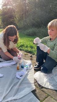 In die Ferien starteten die beiden Sozialpädagoginnen Julia Gash und Nadine Eckert mit dem Basteln von Traumfängern, bei dem die Kinder nicht nur ihre eigenen Kunstwerke schufen, sondern auch mit besonderer Beleuchtung experimentierten, um ihre Traumfänger für die dunklen Herbstnächte zum Strahlen zu bringen. Die kleinen Künstler*innen waren begeistert, ihre individuellen Traumfänger zu kreieren und dabei viel über die Bedeutung von ihnen zu lernen.