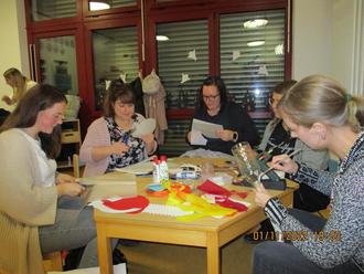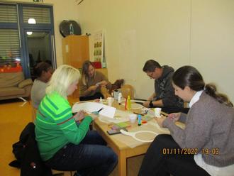 Am Dienstagabend, 1.11.2022 trafen sich die Eltern der Kita Burgsolms zum Laternenbasteln in der Kita. Bei heißem Apfelwein und Kinderpunsch wurde geschnitten, geklebt und gemalt. Die Erzieherinnen der Kita hatten die Rohlinge vorbereitet. So hatten sich die Kinder zuvor IHRE Laterne aussuchen können.