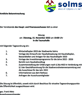 Wirtschaftsplan 2023 der Stadtwerke Solms