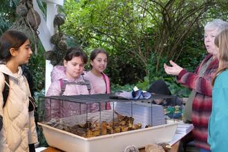 Vorab durften die Kinder mit ihren Lehrerinnen den Garten erkunden, in dem sich neben verschiedenen seltenen Insektenarten auch Schlangen, Eidechsen, Waschbären und Igel zuhause fühlen.
