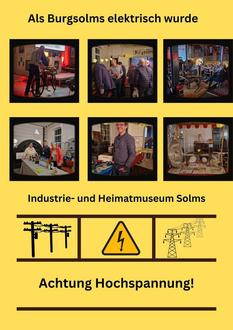 Jörg Biemer erzählte, wie der Strom 1914 nach Burgsolms und in die Umgebung kam. Er zeigte wie der Strom, zum Beispiel im Wasserkraftwerk in Oberbiel bei den Kling Werken produziert wurde. Außerdem nahm er das Publikum zum Abriss des letzten Stromhäuschens mit.