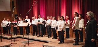 Die Sängerinnen und Sänger der SVG Borussia „Sängergruß“ aus Biskirchen, geleitet von Dieter Kerz, verführten die Zuhörer zuerst zu „Schokolade im Kopf“, gefolgt von leidenschaftlichen Interpretationen von vertonter römischer Liebeslyrik bis zu Gospels.