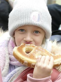 Nach ihrer Darbietung durften sich alle Kinder eine süße Brezel und einen Becher Kakao abholen und liefen anschließend wieder zur Schule zurück.