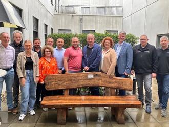 Aus diesem Grund entstand die Idee, seitens der Stadt Solms eine Bank zu verschenken, hergestellt aus Eichenholz aus den Solmser Wäldern. Die Bank wurde inzwischen im Innenhof der Firma Rink aufgestellt und steht somit allen Mitarbeitenden zur Pause zur Verfügung.