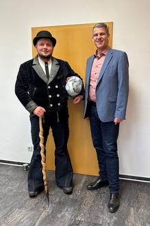 Gestern hatte Bürgermeister Inderthal spontanen Besuch von Wandergesell Boas Meyer. Herr Meyer ist ein sogenannter rechtschaffener fremder Schlossergeselle auf Arbeitssuche. Er stammt gebürtig aus Kalletal Nähe Detmold, Kreis Lippe in Nordrhein-Westfalen und hat zurzeit eine Unterkunft in Hünstetten bei einem Bekannten gefunden. Von dort aus zieht er seine Kreise auf der Suche nach Arbeit, seit Mitte Januar ist er schon unterwegs. Auf Rückfrage erzählt er, dass es gewisse Bedingungen gibt, um auf die Walz zu gehen. Der Geselle muss ledig und ungebunden sein, einen Gesellenbrief besitzen, schuldenfrei und unter 30 Jahre alt sein. Zum Abschluss seines Besuchs im Rathaus erhielt Herr Meyer noch einen Stempel der Stadt Solms in sein Wanderbuch der europäischen Gesellenzünfte und selbstverständlich auch eine kleine Wegzehrung. Wir wünschen Herrn Meyer viel Erfolg auf seiner Gesellenwanderung.