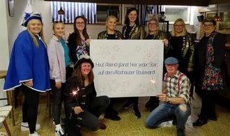 Bei Sekt und guter Laune wurde zunächst noch ein wenig über die in der Kampagne anstehenden Veranstaltungen - hier insbesondere die Besuche bei befreundeten Vereinen - aber auch noch über die geplanten Programmpunkte für die eigene Veranstaltung geredet. Um 20.11 Uhr war es dann wirklich soweit. Sitzungspräsidentin Karola Kotowicz und einige Vertreter/innen der Albshäuser Garde- bzw. Tanzgruppen betraten noch einmal ganz offiziell den Raum. Nach einer kurzen Begrüßung wurde dann der Vortrag zur Mottoverkündigung angekündigt. Dieser wird in Albshausen schon traditionell durch die Albshäuser Schellemänner präsentiert. Da aber Schellemann Johannes Rech beruflich leider verhindert war, begab sich Peter Blaas als Schellemann allein „auf Sonderschicht“. Der Vortrag, der zu Beginn die Wahl zum US-Präsidenten aufgriff, um dann in die Welt der Stars und Sternchen zu münden, endete schließlich mit der Verkündung des Albshäuser Mottos, das diesmal lautet