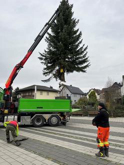 Gestern im Laufe des Tages wurde der große Weihnachtsbaum am Bachtrompeter aufgestellt. Der Baum ist eine private Spende der Familie Rudl vom Kahlen Berg in Oberndorf. Mit Unterstützung von Sven Handke und seinem Kran, sowie den Fachkenntnissen von Hans Lindenthal konnte der Baum vor Ort gefällt und zum Bachtrompeterplatz transportiert werden.Die Mitglieder von Burgsolms Aktiv haben dann sogleich den Baum weihnachtlich geschmückt, die Beleuchtung wird noch in den nächsten Tagen vor dem 1. Advent angebracht. Herzlichen Dank an Hans Lindenthal und Sven Handke für die tatkräftige Unterstützung, sowie dem Team von Forst und Bauhof der Stadt und der Familie Rudl für die Spende.