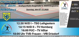 Am 07.12.2025 ist es soweit! Beim Heimspieltag unserer Handball Jugendmannschaften in der Burgsolmser Großsporthalle kommt der Nikolaus zu Besuch und hat einen vollgepackten Rucksack mit tollen Geschenken für alle Kinder dabei! Zwischen 12:00 Uhr und 15:00 Uhr werden die Geschenke verteilt und gerne auch Bilder gemacht.