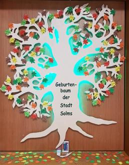 Seit einem Jahr steht im Foyer von Taunushalle und Rathaus in einer Vitrine ein Geburtenbaum. Die bunten Blätter am Baum zeigen, wie viele Babys im Solmser Stadtgebiet geboren wurden. Am Jahresende hingen 112 bunte Blätter am Baum. Hiervon entfielen die meisten Geburten auf den Ortsteil Niederbiel mit insgesamt 27, gefolgt von Burgsolms mit 25, Oberbiel mit 22, Oberndorf mit 21 und schlussendlich 19 in Albshausen. Insgesamt haben 60 Jungen und 52 Mädchen das Licht der Welt erblickt, davon ein Zwillingspaar.