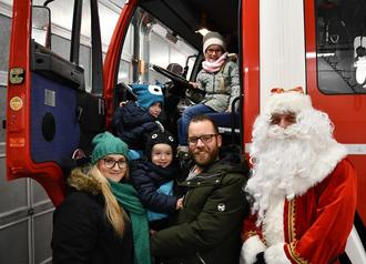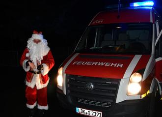 Auch in diesem Jahr ließ der Nikolaus seinen Rentierschlitten wieder in der Garage und bediente sich den knallroten Feuerwehrautos der Burgsolmser Feuerwehrleute, die den alten Mann im roten Mantel und schwarzen Stiefeln von Haus zu Haus fuhren und bei einem persönlichen HoHoHo nicht nur den Kindern ein Lächeln ins Gesicht zauberte. Doch diesmal war etwas anders, denn schon bevor in der Fahrzeughalle des Burgsolmser Gerätehauses ein lautstarkes „Los geht´s“ zu hören war, bekam der Nikolaus Besuch von der Familie Loh. Charlotte, Moritz und Hennes waren mit ihren Eltern Stefanie und Benjamin in das Domizil der Burgsolmser Brandschützer gekommen und waren die ersten, deren Augen der Nikolaus zum Funkeln brachten.
