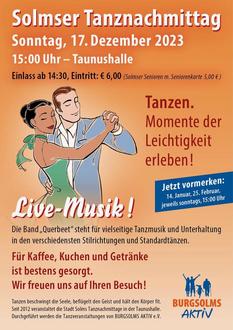 Der nächste Tanznachmittag mit der Band „Querbeet“ findet am 17.12.2023 in der Taunushalle statt.