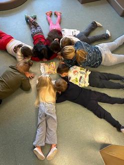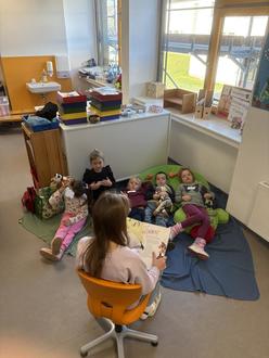 Die Kita Wirbelwind in Oberndorf hat die Gruppenräume in eine einladende Vorleseumgebung verwandelt und las den Kindern in kleinen Gruppen Bücher zu unterschiedlichen Themen vor.