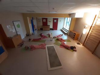 In der Kindertagesstätte in Oberbiel läuft für die Vorschulkinder ein Yogaangebot. Die Kinder nehmen dieses freiwillig wahr und genießen diese Zeit. Die Ziele für dieses Projekt sind Kräftigung des ganzen Körpers, Balance finden, eigene Grenzen spüren, emotionale Stabilität, Stärkung des Selbstbewusstseins. Die kommissarische Leitung der Einrichtung, Andrea Frey legt großen Wert auf die Freude beim gemeinsamen Üben, viele Kinder entdecken hier ihren natürlichen Bewegungsdrang wieder.