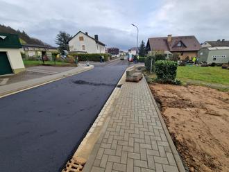 Im Rahmen des Straßenbaus wurden auch die Gehwege erneuert und einheitlich gepflastert. Auch die Hausanschlüsse sind im Rahmen der Baumaßnahme erneuert worden, da diese teilweise schon 50 bis 60 Jahre alt waren.