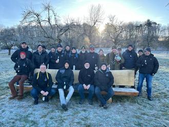 Im Zuge des Grenzganges 2025, den die „Grenzgänger Albshausen“ traditionell immer am 29. Dezember des Jahres ausrichten, gab es dann eine Zwischenstation an der Bank, um ein erstes gemeinsames Foto mit nahezu allen aktiven Vereinsmitgliedern zu machen. Demnächst soll nun noch eine Gedenkplakette der Grenzgänger an der Bank angebracht werden. Die „Grenzgänger Albshausen“ würden sich freuen, wenn die Bank perspektivisch nicht nur eine Ruhebank für Spaziergänger, sondern - insbesondere im Sommerhalbjahr - auch ein Ort der Begegnung im sogenannten „real life“ wird. Mit einer Länge von mehr als vier Metern bietet die Bank dafür jedenfalls genug Platz.