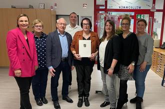 Unter den Gästen waren Herr Leidecker, Erster Stadtrat und Vertreter der Bürgermeisterin, sowie Tanja Schobel von der Amtsleitung. Auch Stefanie Bezauschka aus der Personalleitung, Isabelle Mandler vom Personalrat und Vertreter des Elternbeirats, Andreas Dietrich und Anastasia Dering, ließen es sich nicht nehmen, persönlich zu gratulieren. Einen besonderen Akzent setzte zudem Silvia Buchholz, die ehemalige Leitung der Kita Oberbiel. Mit Blumen, einer Urkunde und warmen Worten wurde Sabine Schreiners langjähriger Einsatz gebührend gewürdigt.