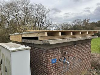 Das Dach des Pumpenhäuschen Knebelsborn in Niederbiel ist marode, daher wird aktuell die Dacheindeckung abgerissen und soll durch ein Pultdach ersetzt werden. Die Baumaßnahmen laufen aktuell noch und werden von der Firma Rödel aus Solms ausgeführt. Mit dieser Maßnahme soll die Wasserentnahmestelle dauerhaft in ihrer Funktion gesichert und erhalten werden.