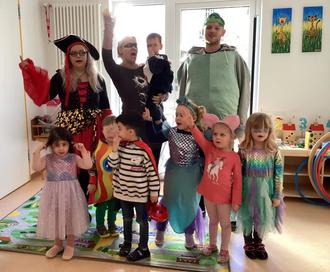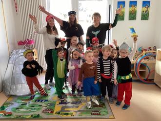 In diesem Kita-Halbjahr dreht sich alles um das Wasser in der Kita. Deshalb ist auch unser Faschingsmotto in diesem Jahr das Element Wasser. In den Gruppen wurden schon seit Wochen Wassertiere, Aquarien, Piratenschiffe, Taucherausrüstungen und Unterwasserwelten gebastelt und damit die Räume geschmückt. Am Rosenmontag war Rambazamba in den Gruppen. Es gab ein Faschingsfrühstück für alle Kinder, Discoparty und Bewegungsspiele zum Mitmachen. Die Kinder und Erzieherinnen und Erzieher hatten sich entsprechend dem Motto verkleidet. Tolle Kostüme wurden da präsentiert. Am Dienstag ging es dann genauso munter und bunt weiter. Der Elternbeirat hat für den gesamten Kindergarten wieder eine Faschings-Krebbel-Spende organisiert.