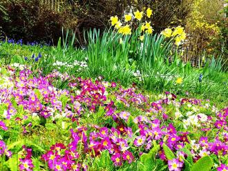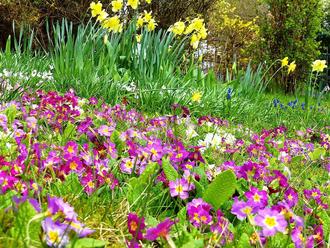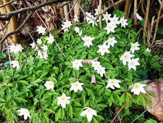 In voller Blütenpracht zeigen sich Primeln in einem Treiser Vorgarten und auch Buschwindröschen etwas versteckt in einer Hecke beim ASC Teich in Treis (Aufnahmen vom 22. und 28. März)