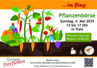 Sollten Sie sich für Pflänzchen interessieren und vielleicht ein paar erwerben wollen, dann laden wir Sie herzlich zu unserer zweiten Treiser Pflanzenbörse ein.