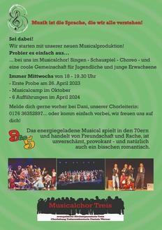 | 18:00 Uhr | Gemeinsame Probe Musicalchor und Jugendchor zum Start des neuen Musicals „9 to 5“ |