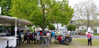 Zur großen Freude des Chores hatten sich zahlreiche Zuhörerinnen und Zuhörer an vier 'Haltestellen' eingefunden. Am letzten Haltepunkt - am Bouleplatz neben dem Feuerwehrgerätehaus - gab es im Anschluss an das letzte Singen kalte Getränke zum gemütlichen Beisammensein. Selbst der später einsetzende Regen konnte die gute Stimmung nicht trüben.