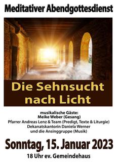 | Meditativer Abendgottesdienst im ev. Gemeindehaus: „Die Sehnsucht nach Licht“ |
