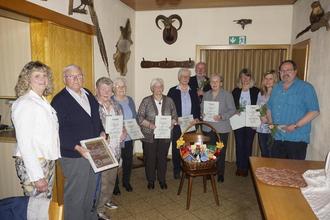 Die Geehrten mit der 1. Vorsitzenden von links nach rechts: Elvira Vogel, Willi Zecher, Herta Zecher, Inge Zecher, Hannelore Schlapp, Helga Schwarz, Erich Schwarz, Sieglinde Müller, Andrea von Bobart, Sabine Puschmann, Lothar Seipp