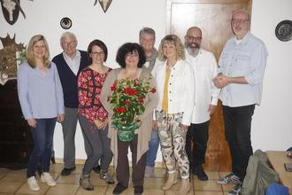 Der Vorstand von links nach rechts: Sabine Puschmann, Willi Zecher, Tina Haybach, Dirigentin Daniela Werner, Silvia Melati, 1. Vorsitzende Elvira Vogel, Ingo Licher, Norfried Stumpf