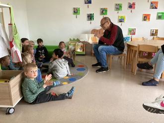 Aufgeschoben, ist nicht aufgehoben haben wir uns gesagt und nun kurzfristig gleich zwei Vorlesetage mit unseren Vorleser*innen durchgeführt. Am Freitag, den 26. April kamen Erika May und Silke Passlak mit zwei tollen Geschichten und am Montag, den 29. April kamen Mechthild Glawion, Jutta Pächthold und Vereins-Vorsitzender Reiner Klein zu uns in die Gruppen. Von der Geburtstagstorte für die Katze, dem Wildschwein und dem traumhaften Flug, der Raupe Nimmersatt, bis zum Grüffelo wurden alle Geschichten mit viel Freude auf beiden Seiten vorgelesen und gehört.