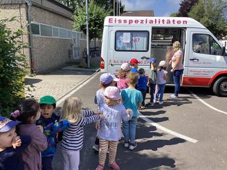 Am Donnerstag, dem 6.Juni stand pünktlich um 11.30 Uhr Antonio mit seinem Eiswagen vor dem Kindergarten. Da war die Freude bei den Kindern riesengroß!