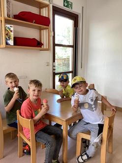 Danach sendet er das Eisauto freundlicherweise auch noch zum Kindergarten. Darüber freuen wir uns immer sehr! Jedes Kind darf sich dann eine Kugel Eis bei Toni aussuchen. Ein leckeres Eis ist immer eine sehr beliebte Leckerei für unsere Kleinen.