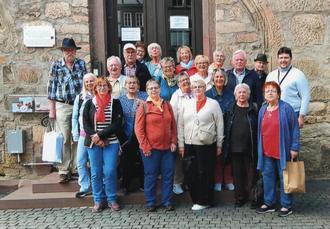 Auf der Fahrt machten wir einen kurzen Halt, bei dem Unsere Vorstandsmitglieder Esther und Volkmar Lux die Mitreisenden mir Maibowle und Knabbergebäck versorgten. In Alsfeld angekommen hatten wir bis 14.00 Uhr Zeit die Stadt zu erkunden. Um 14.00 Uhr begann die kulinarische Stadtführung. Wir erfuhren, dass Alsfeld an einer der wichtigsten Handelswege im Mittelalter gelegen hatte und so zu Reichtum gekommen war. Auch das ehemalige Kloster lernten wir auf unserem Rundgang kennen. Außerdem kosteten in verschiedenen Lokalen Alsfelder Taler, ein Keksgebäck, Kartoffelwurst und Bier. Wein und Schmierkuchen gab es in einem urigen Keller. Den Abschluss machten wir im Lokal „Kartoffelsack“. Als wir das Lokal verließen, spielte vor dem Lokal die heimische Band „Back to the 80“. Wir hörten eine Weile zu und traten dann den Heimweg an. Froh und voller interessanter Eindrücke kehrten wir nach Treis zurück.