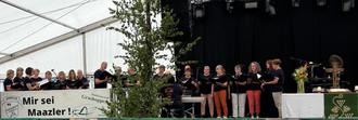Am Donnerstag sang zur Eröffnung der Jubiläumskirmes die Voice Factory des Gesangvereins Mainzlar, Burschenschafts Vorsitzender Jonas Becker und Bürgermeister Peter Gefeller begrüßten die Anwesenden. Nach dem erfolgreichen Fassanstich folgte eine beeindruckende Diashow von Gerald Hinz, mit von vielen Helfern zusammengetragenen Burschenschafts Bildern aus 70 Jahren Geschichte. Die Mallorca-Party am Freitag mit Malle-Star Julian Benz und DJ Tobi sorgte für viel Stimmung. Am Samstag forderte das Heuballen-Wettrennen mit dem TV05 Mainzlar die engagierten Sportler. Die begeisterten Zuschauer feuerten die Teams lautstark an. Ein Spielmobil für Klein und Groß hatte der TV 05 zur Verfügung gestellt und betreute es am Samstag und Sonntag. Zur großen Begeisterung vieler Kinder. Am Abend war im Kirmeszelt Gaudi Power, Bachwasser und Happy Hour angesagt. Der Sonntag startete mit dem traditionelle Mitten-im-Dorf-Gottesdienst, mit Pfarrer Traugott Stein und der Voice Factory. Im Anschluss wurde, zur Freude aller Anwesenden, die beiden noch lebenden Mitbegründer der Burschenschaft, Karl Friedrich Zecher und Willi Zecher, vom Vorsitzenden der Burschenschaft Jonas Becker, geehrt. Die Vorsitzende des Gesangvereins Mainzlar, Elvira Vogel, trug eine beeindruckende Zusammenfassung von 150 Jahren Vereinsgeschichte vor. Die noch vorliegenden Chroniken und Festschriften ermöglichten dies. Die Zusammenfassung von 150 Jahren Vereinsgeschichte war eine Herausforderung. Die Kirmesbesucher dankten dies Elvira Vogel mit aufmerksamen zuhören. Den fröhlichen Abschluss des offiziellen Teils machte die Tanzgruppe der Minis des TV-Mainzlar. Beim folgenden Kirmesessen und Frühschoppen wurde noch ausgelassen und fröhlich gefeiert und sich an so manche Anekdote erinnert. Auch die Sektbar, von der Mädchenschaft „Grashoppers“ personell unterhalten, wurde gerne besucht.