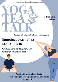 | 14 Uhr | Yoga Tea & Talk im Gemeindehaus zum Thema: „Ich sehe mich selbst in meinem Licht“ auf Spendenbasis |