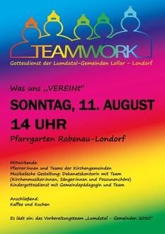 Besonders hinweisen möchten wir auf den Gottesdienst am 11. August um 14:00 Uhr im Pfarrgarten Rabenau-Londorf mit allen Gemeinden des unteren Lumdatals von Lollar bis Londorf und Ruttershausen. Im Anschluss erwartet Sie Kaffee und Kuchen. Ganz herzliche Einladung!