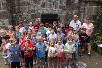 Den Betreuern wurde die beiden Broschüren (das Climbacher Wasserhaus von 1908 und die kleine Broschüre wie kommt das Wasser auf den Berg von Arnulf Kuster und Peter Stein) übergeben. Es war eine wunderbare Bereicherung mit den Kindern diesen Tag am Wasserhaus zu verbringen.