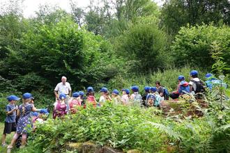 Im Rahmen der Ferienbetreuung wanderten die Schülerinnen und Schüler des schulischen Ganztages der Grundschule am Edelgarten am Mittwoch, 24.07.24 von Treis nach Climbach zum Wasserhäuschen.