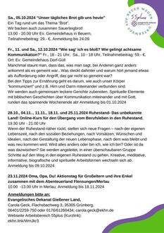 | 11 Uhr | Nachbarschaftraumgottesdienst im Pfarrgarten Londorf |