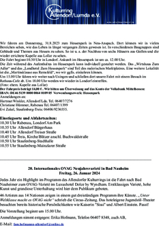 Die Fahrt beginnt 10.30 Uhr in Londorf. Ankunft im Hessenpark ist um ca. 12.00 Uhr.