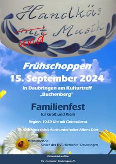 Am Sonntag, dem 15. September veranstaltet der Gesangverein Harmonie Daubringen seinen traditionellen Frühschoppen „Handkäs und Musik“ auf dem Gelände des Kulturtreff Buchenberg in Daubringen.