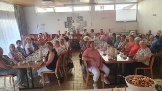 50 Frauen zwischen 50 und 91Jahren folgten trotz des sehr heißen Wetters der Einladung. Dem liebevoll gestalteten Büfett konnte sich nach einer freundlichen Begrüßung ausgiebig gewidmet werden.