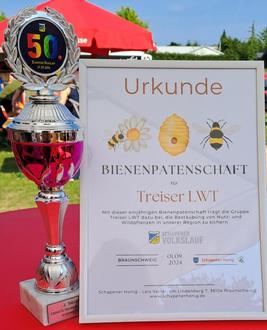 Bei der Siegerehrung für die größte Gruppe erreichte der Treiser LWT den zweiten Platz und wurde für diesen Erfolg neben einem Pokal mit einer Bienenpatenschaft belohnt. Eine wunderbare Idee, denn diese Patenschaft mit dem Namen „Treiser LWT“ trägt dazu bei, die Bestäubung von Nutz- und Wildpflanzen in der Region Schapen zu sichern.