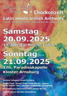 | 19.30 Uhr | Chorkonzert der Kantorei Collegium Vocale in der ev. Kirche Lollar |