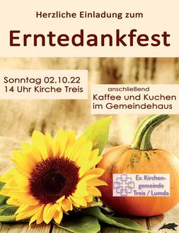 | 14:00 Uhr | Feier des Erntedankfestes in unserer Treiser Kirche. |