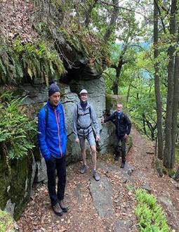 Nächster Anlaufpunkt war das „Kalmithaus“ auf dem Kalmit, der mit 673 m der höchste Berg des Pfälzerwalds und nach dem Donnersberg der zweithöchste Gipfel der Region Pfalz ist. Nach einer guten Stärkung mit Ausgleich des Flüssigkeitsverlusts ging es auf die auf die letzte Etappe mit anspruchsvollem Abstieg zum Weindorf „ St. Martin“ mit Genuss eines Glases neuen Weins. Ein Bus beförderte die Wandergruppe wieder zum Ausgangspunkt, dem Standplatz unserer beiden PKWs. Von dort erreichten wir das Hotel „Heiligenthaler Hof“ in Landau/Pfalz zur Übernachtung. Nach einem zünftigen Abschluss des ersten Wandertages ging es am nächsten Morgen gut gestärkt bei wechselhaftem Wetter zur 2. Etappe. Vom Wanderparkplatz bei St. Johann/Pfalz (mit PKW angefahren) wurde die „Pfälzer Hüttentour“ in Angriff genommen. Am „Naturfreundehaus Kiesbuckel“ vorbei erreichten wir den Orensfelsen mit einem der schönsten Panoramablicke über den Pfälzerwald und der Rheinebene. Weiter führte die Tour zur „Landauer Hütte“ (460 m) und der „Trifelsblickhütte“ (550 m) mit jeweiligen Einkehrschwüngen ins Tal nach Gleisweiler. Über den Wanderweg an den Weinbergen der „Oberhardt“ entlang erreichten wir wieder den Ausgangspunkt unserer Rundtour.