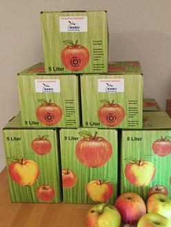 Der NABU Staufenberg bietet seinen diesjährigen Streuobstwiesen-Apfelsaft zum Verkauf an. Er besteht aus Äpfeln verschiedener Sorten von der bedeutenden NABU-Streuobstwiese in Mainzlar.